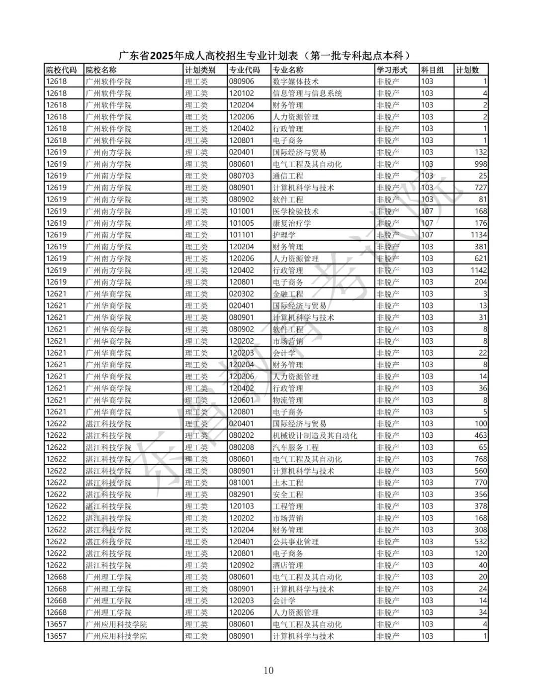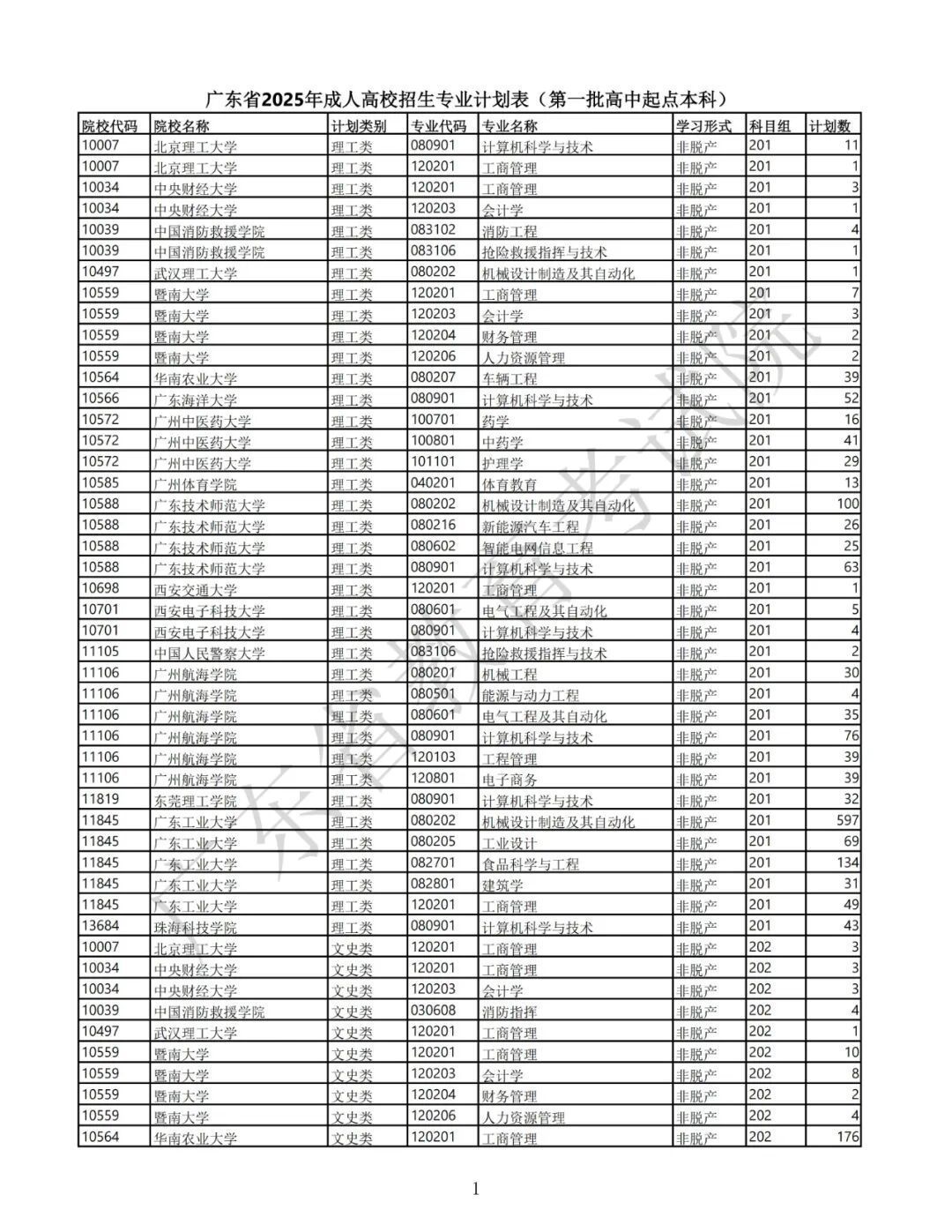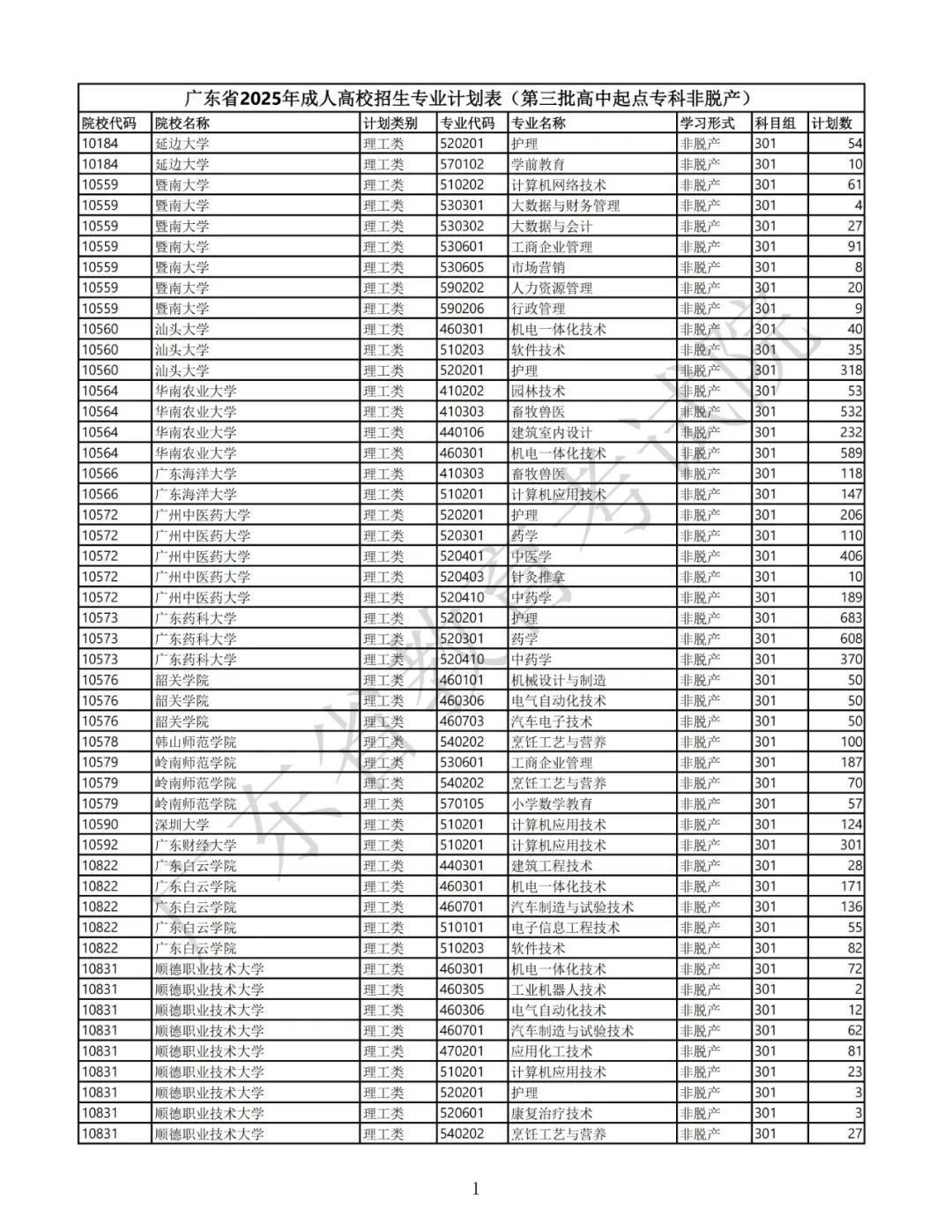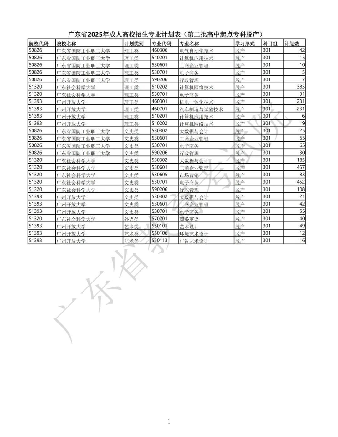 1.广东省2025年景东说念主高校招生专科筹画表(第一批专科源头本科)