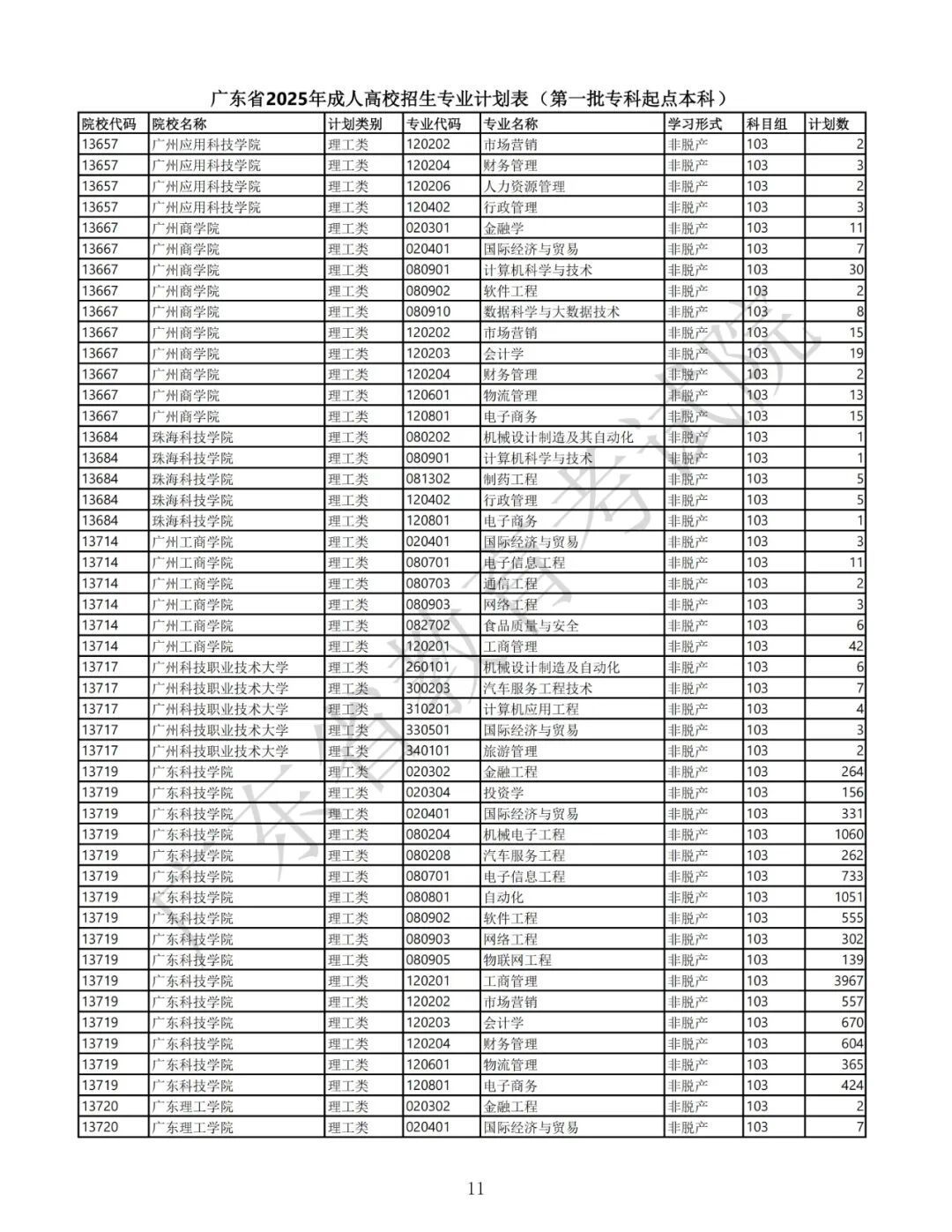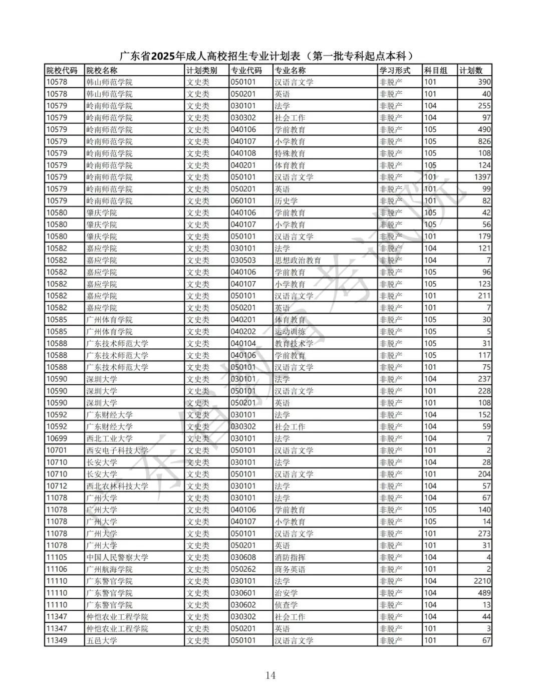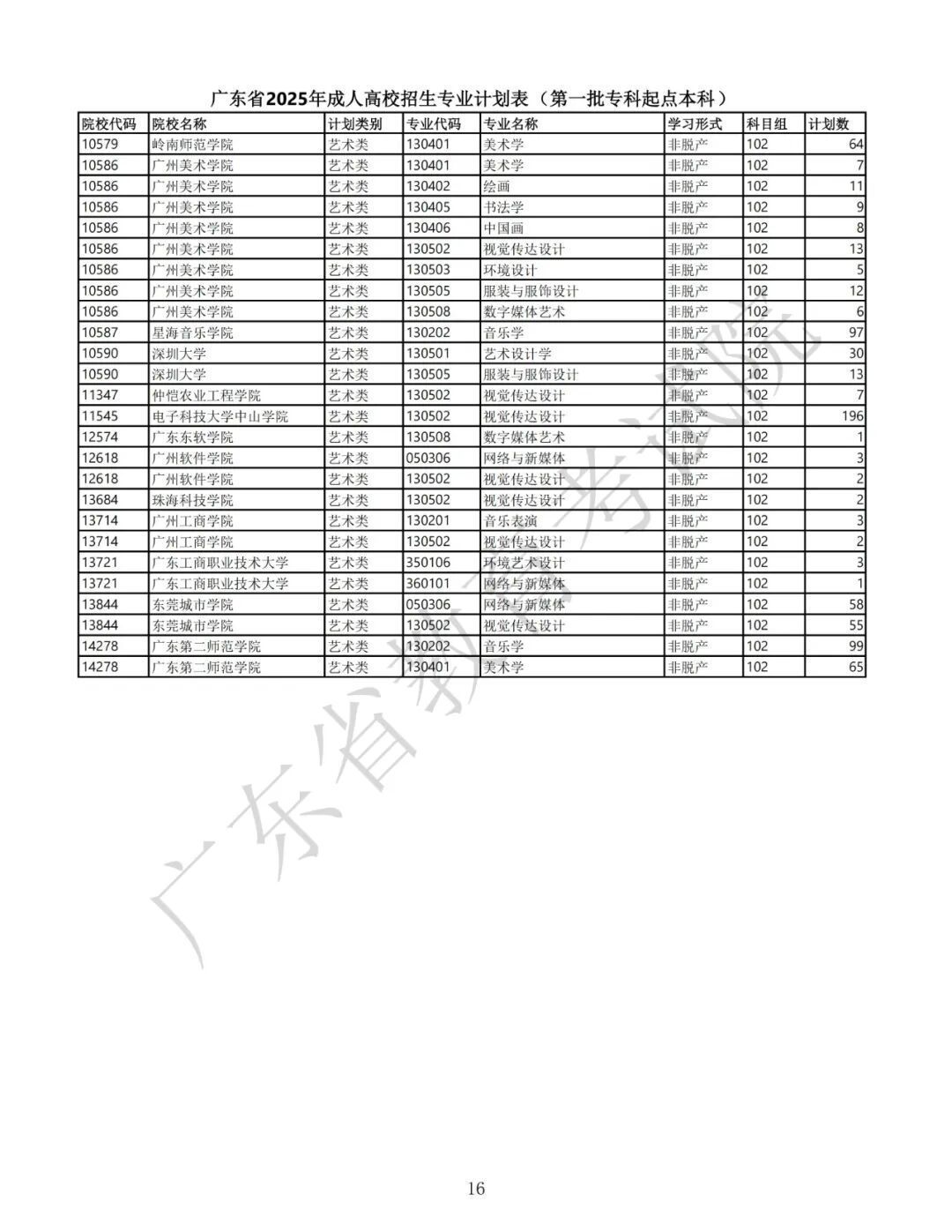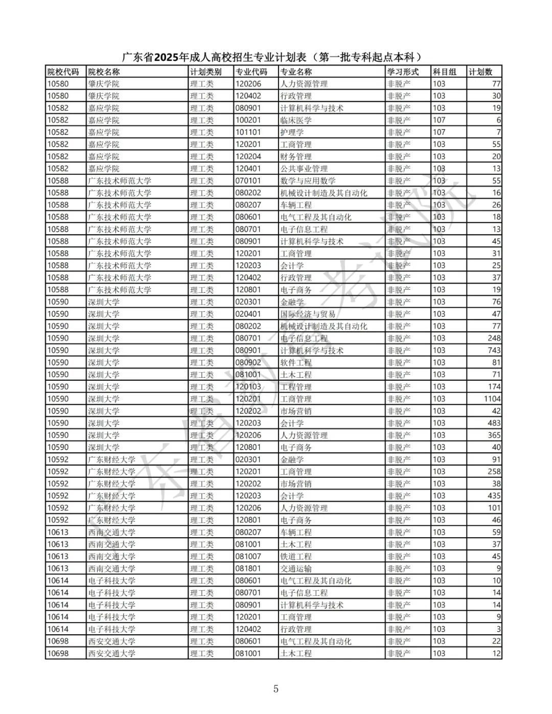 1.广东省2025年景东说念主高校招生专科筹画表(第一批专科源头本科)