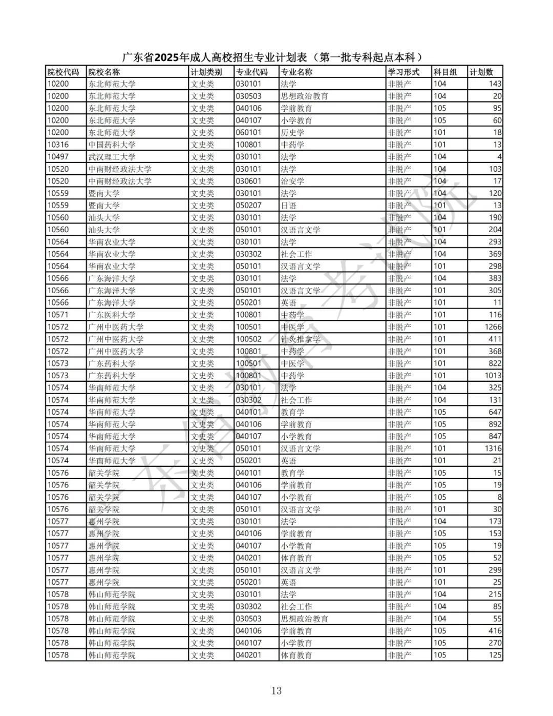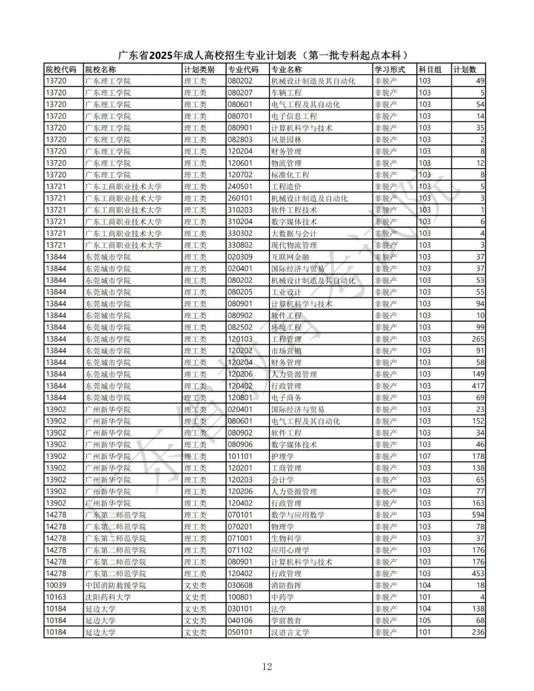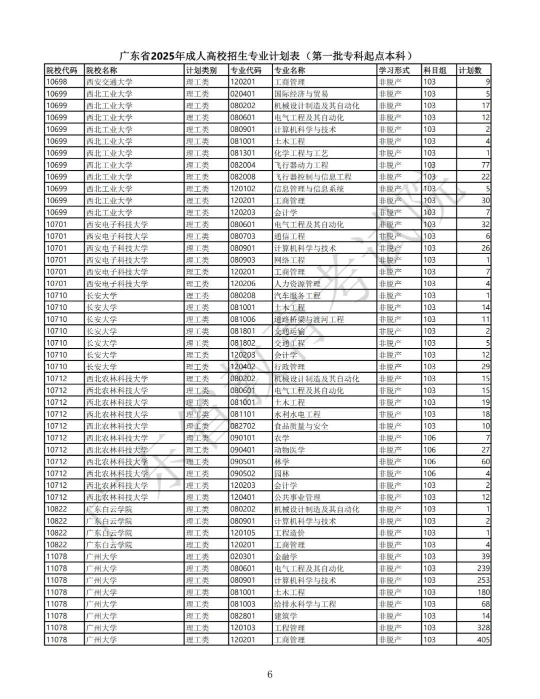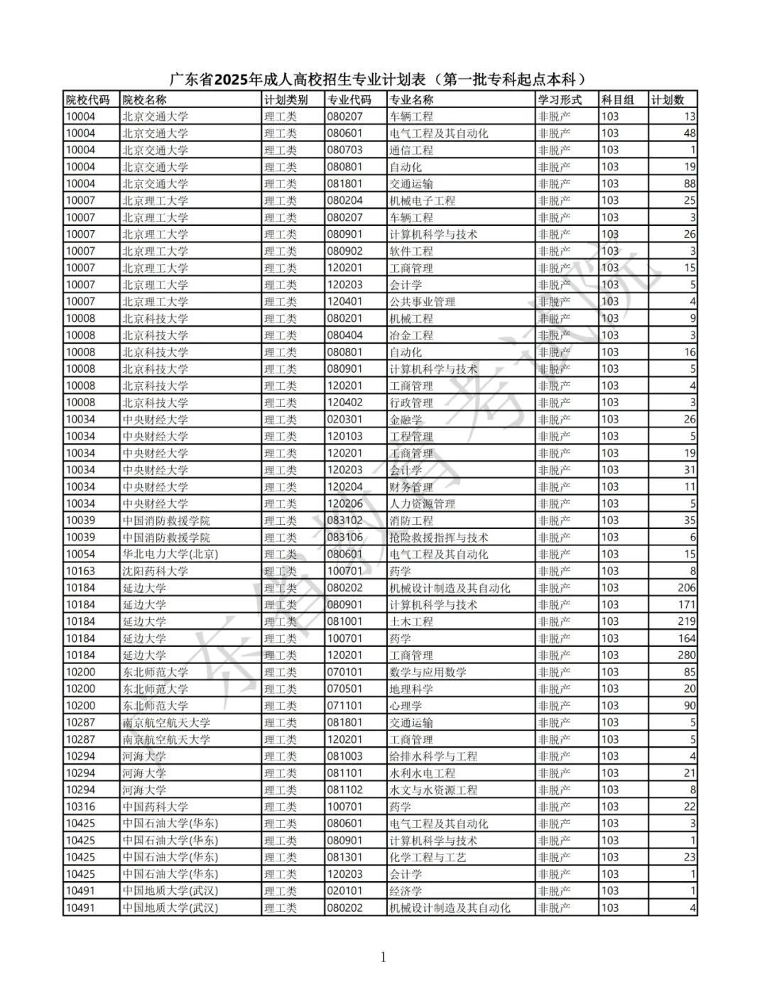 1.广东省2025年景东说念主高校招生专科筹画表(第一批专科源头本科)