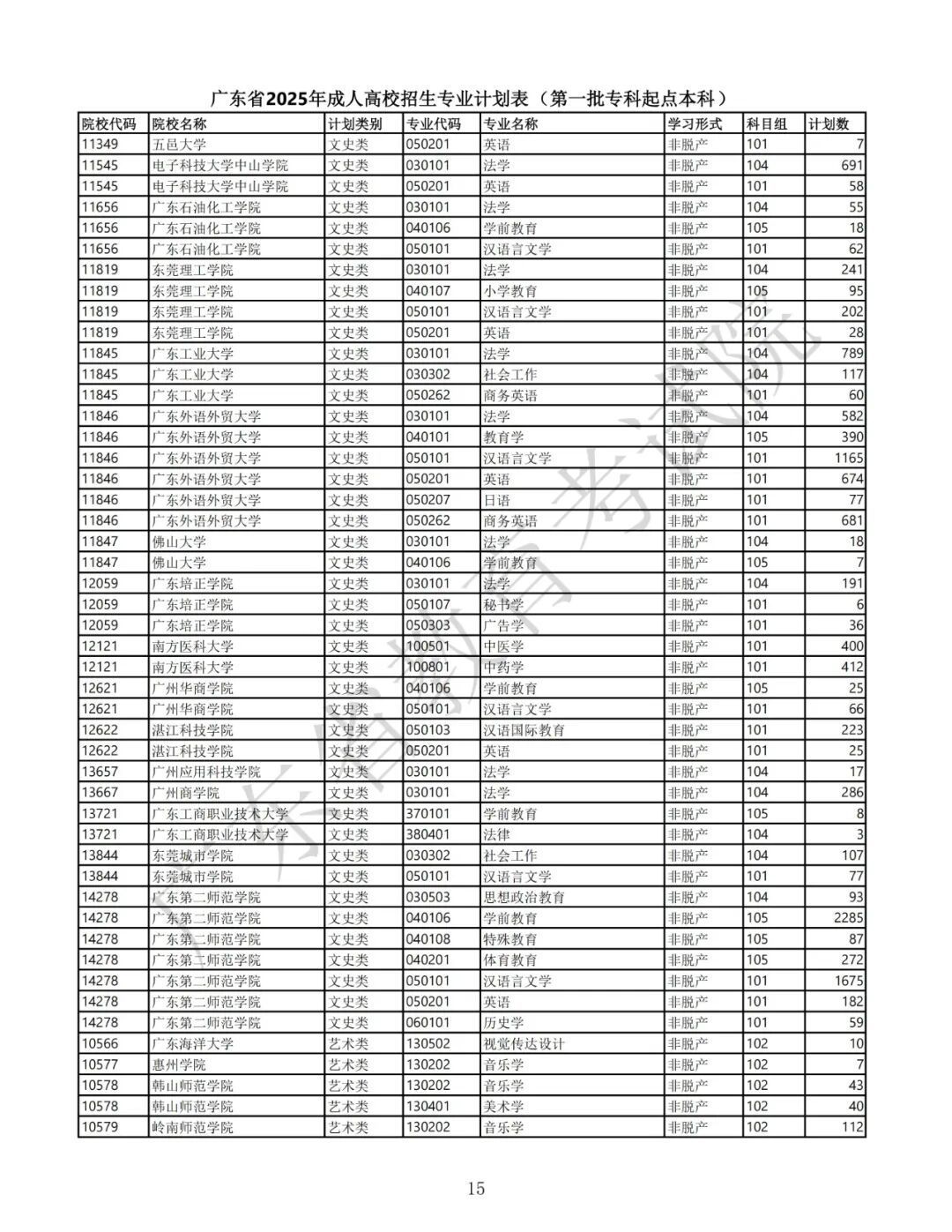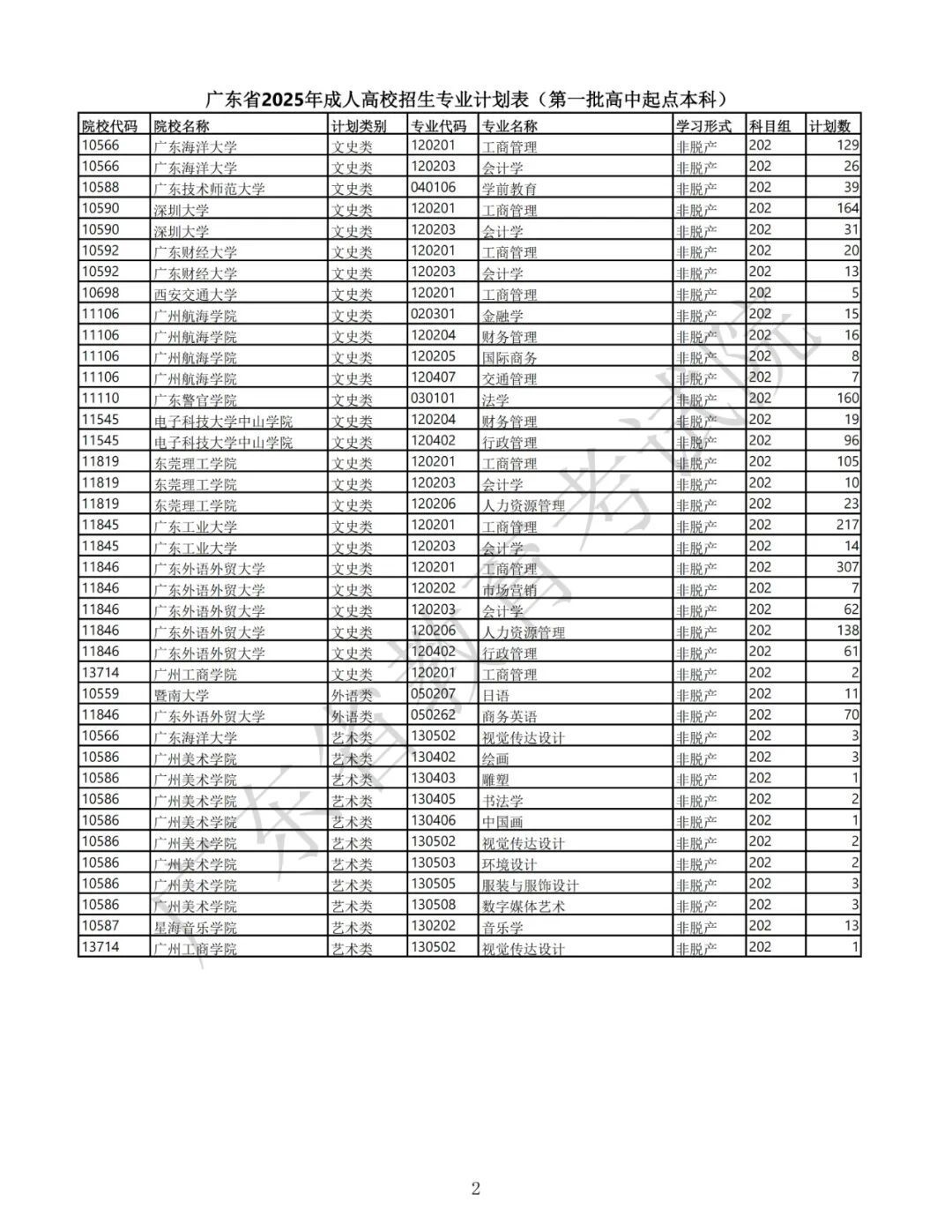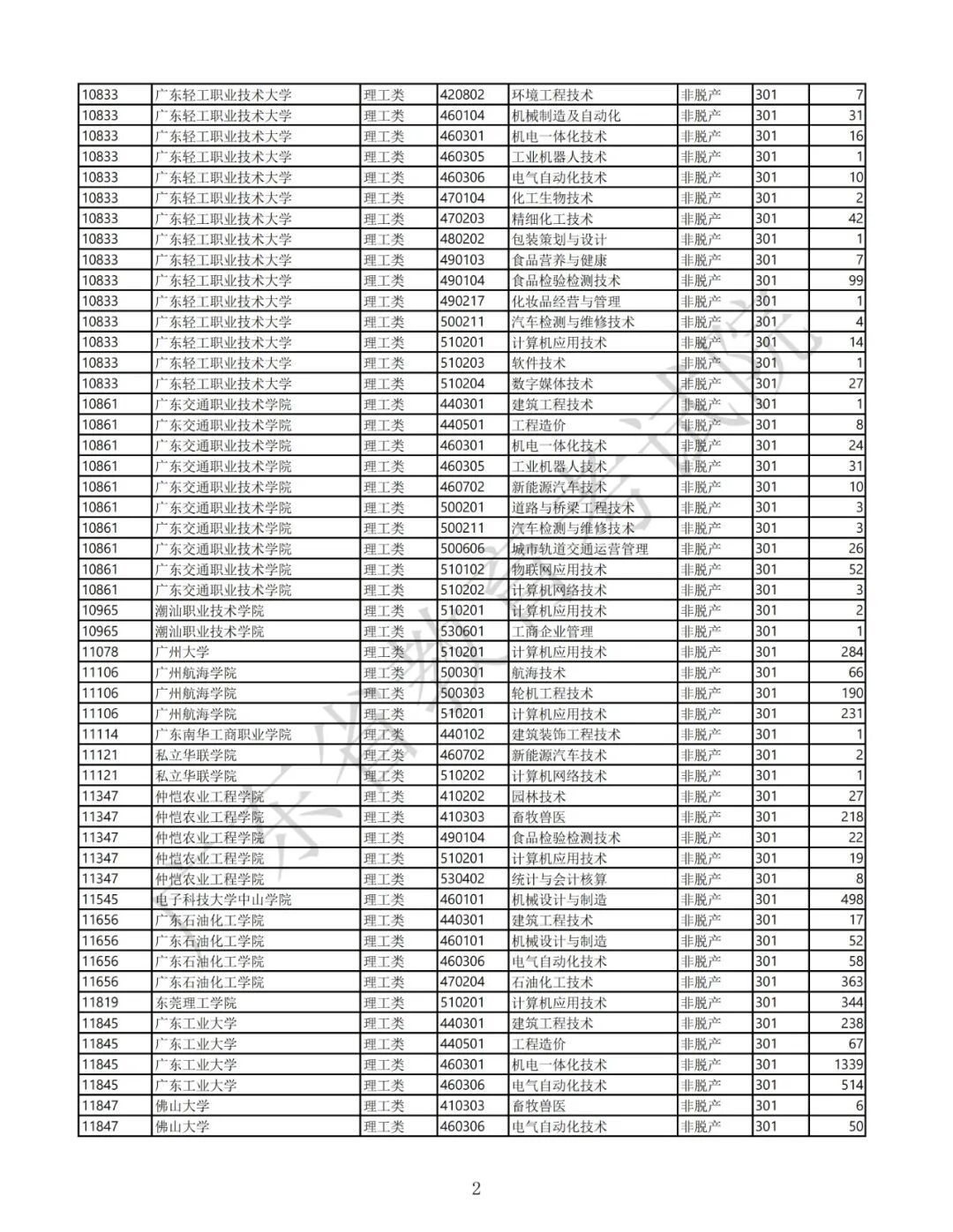 2.广东省2025年景东说念主高校招生专科筹画表(第一批高中源头本科)