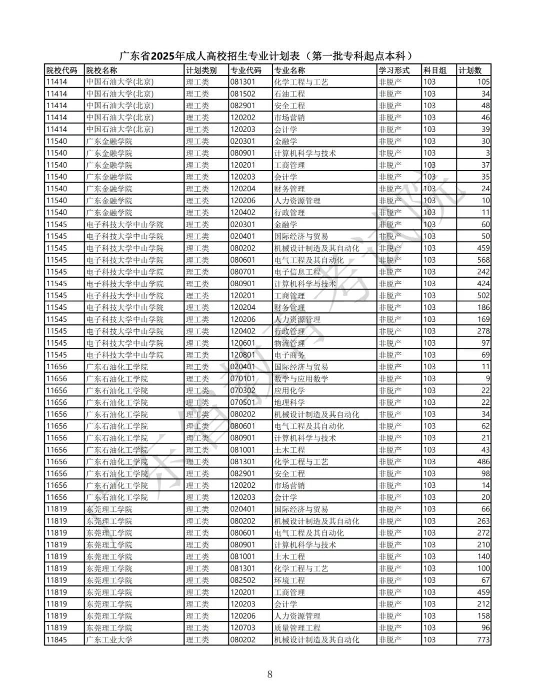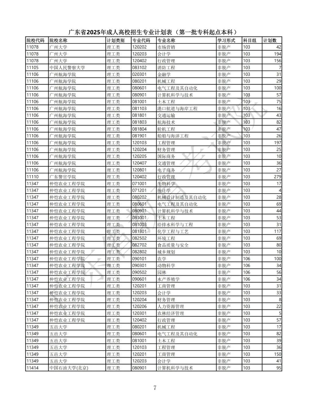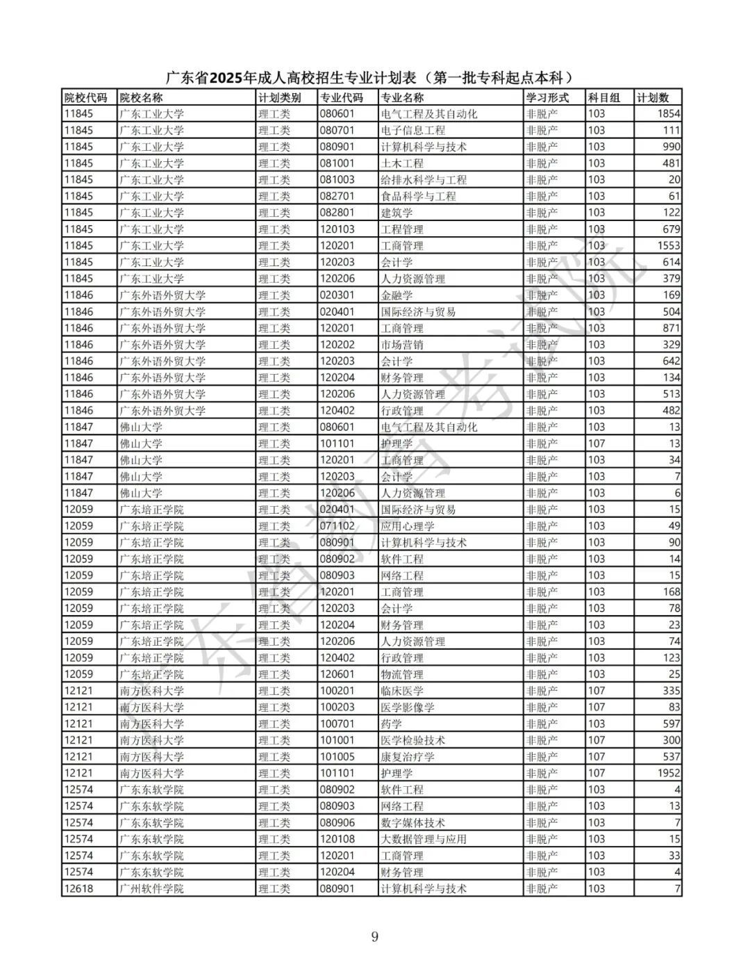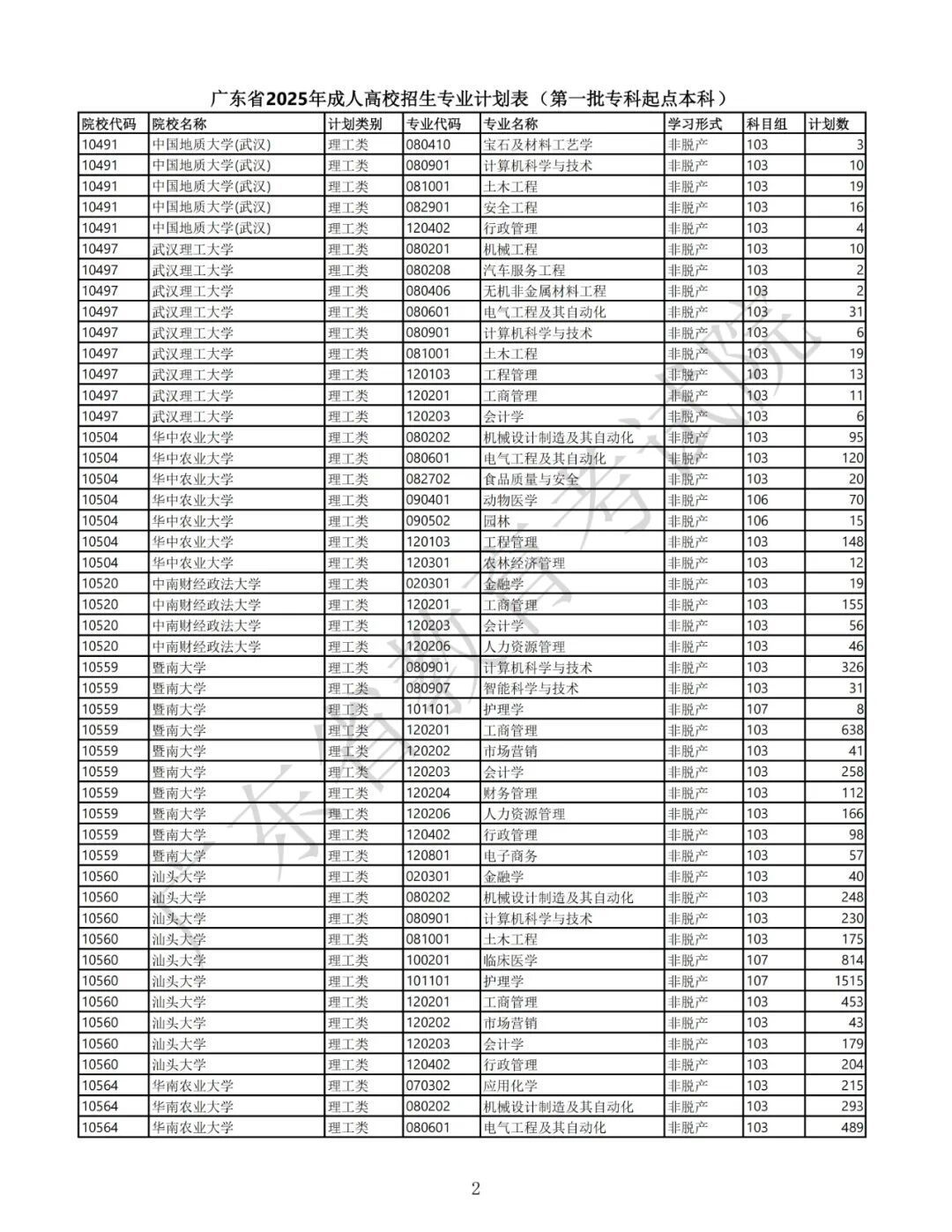 2.广东省2025年景东说念主高校招生专科筹画表(第一批高中源头本科)