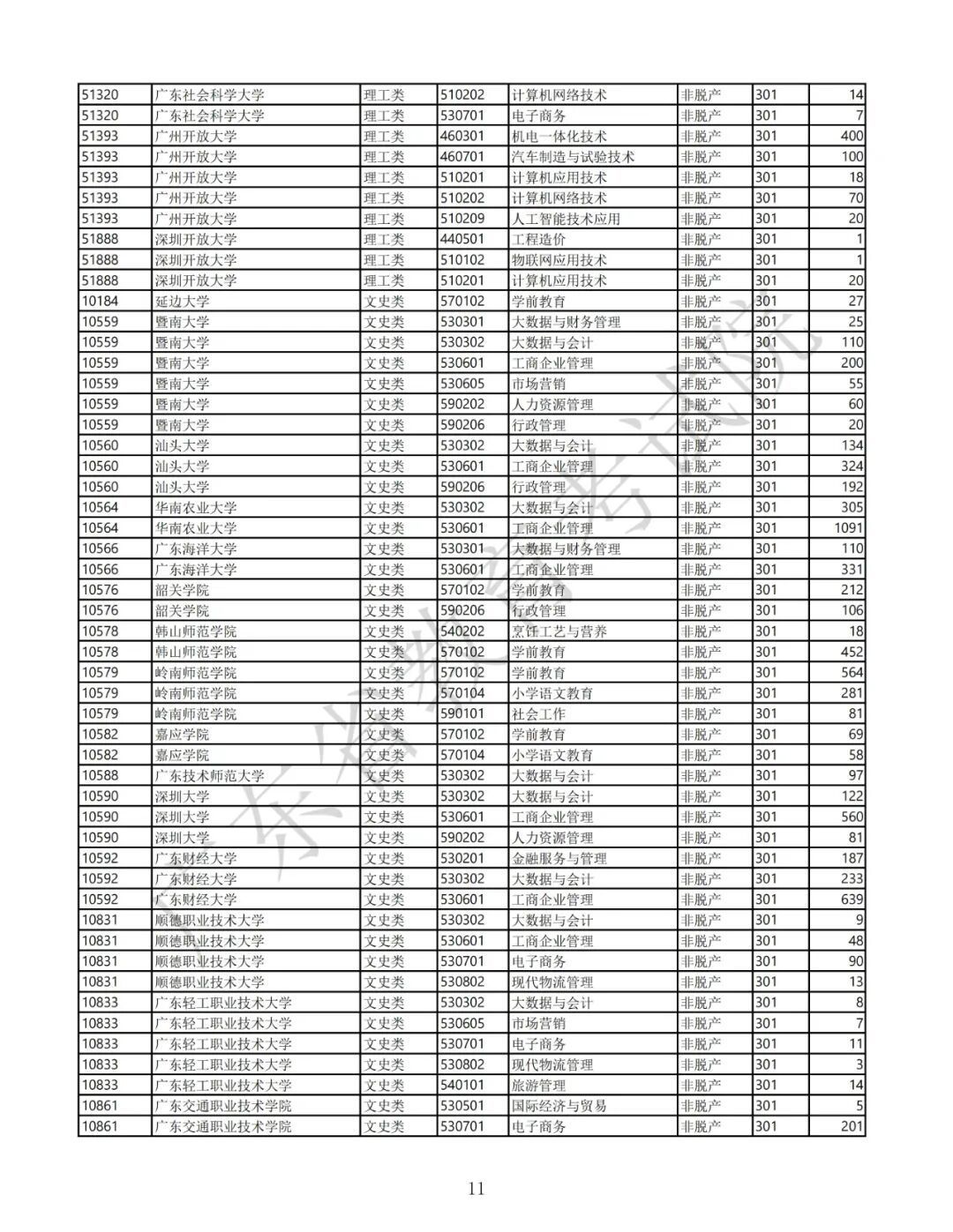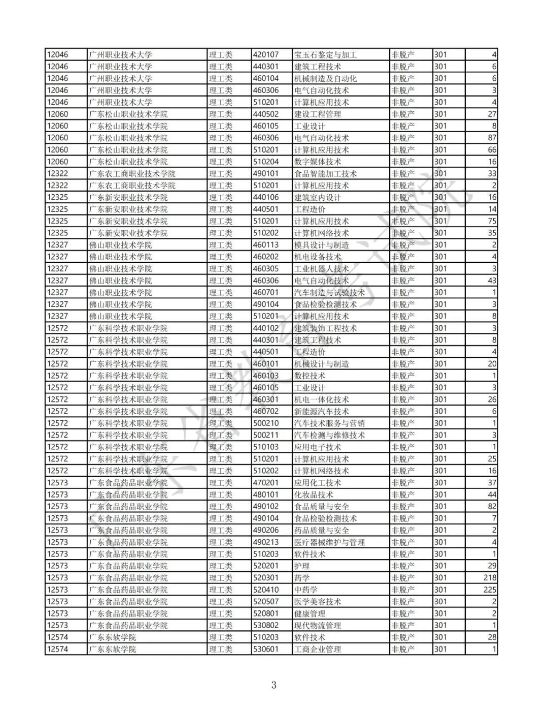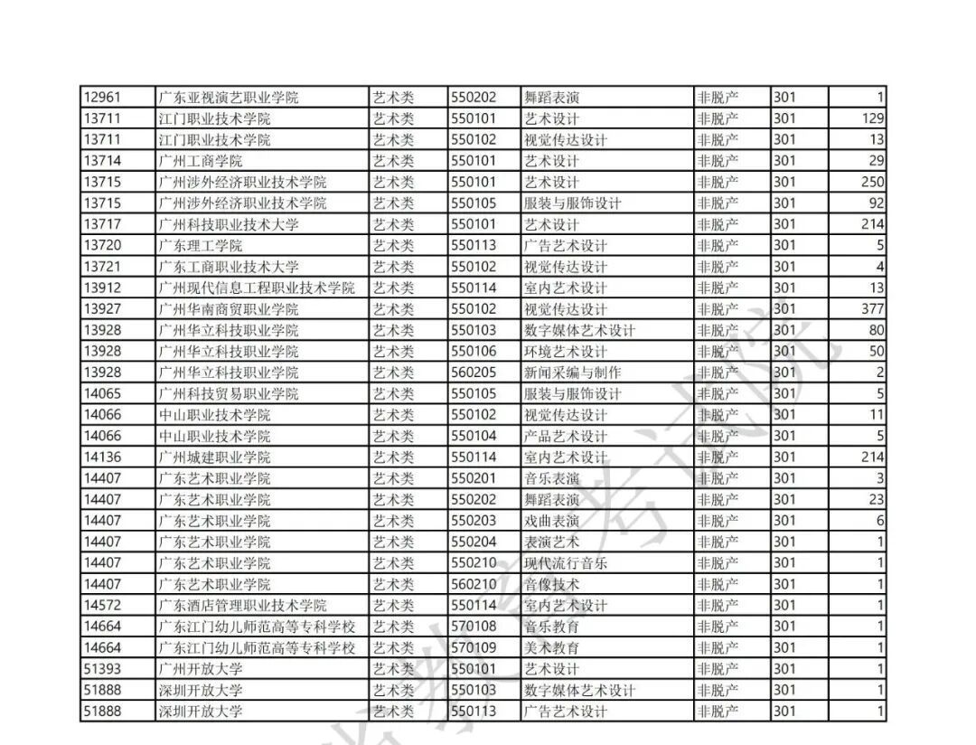 3.广东省2025年景东说念主高校招生专科筹画表(第二批高中源头专科脱产)