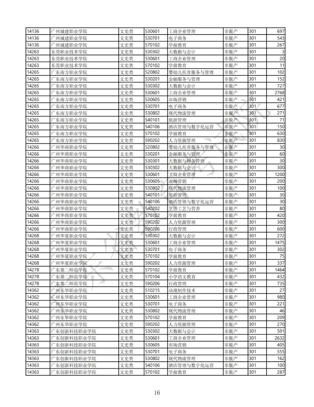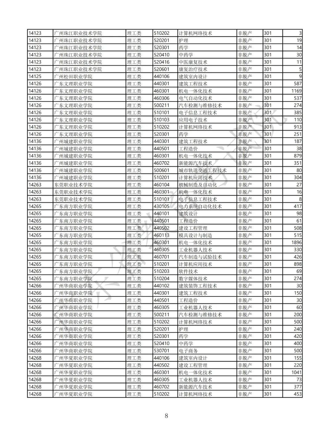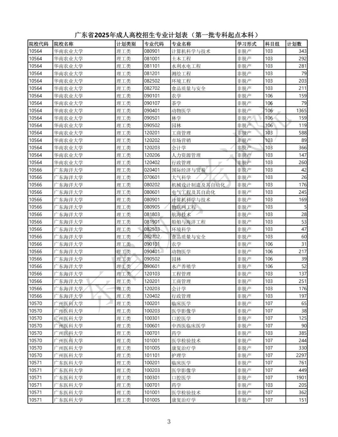 3.广东省2025年景东说念主高校招生专科筹画表(第二批高中源头专科脱产)