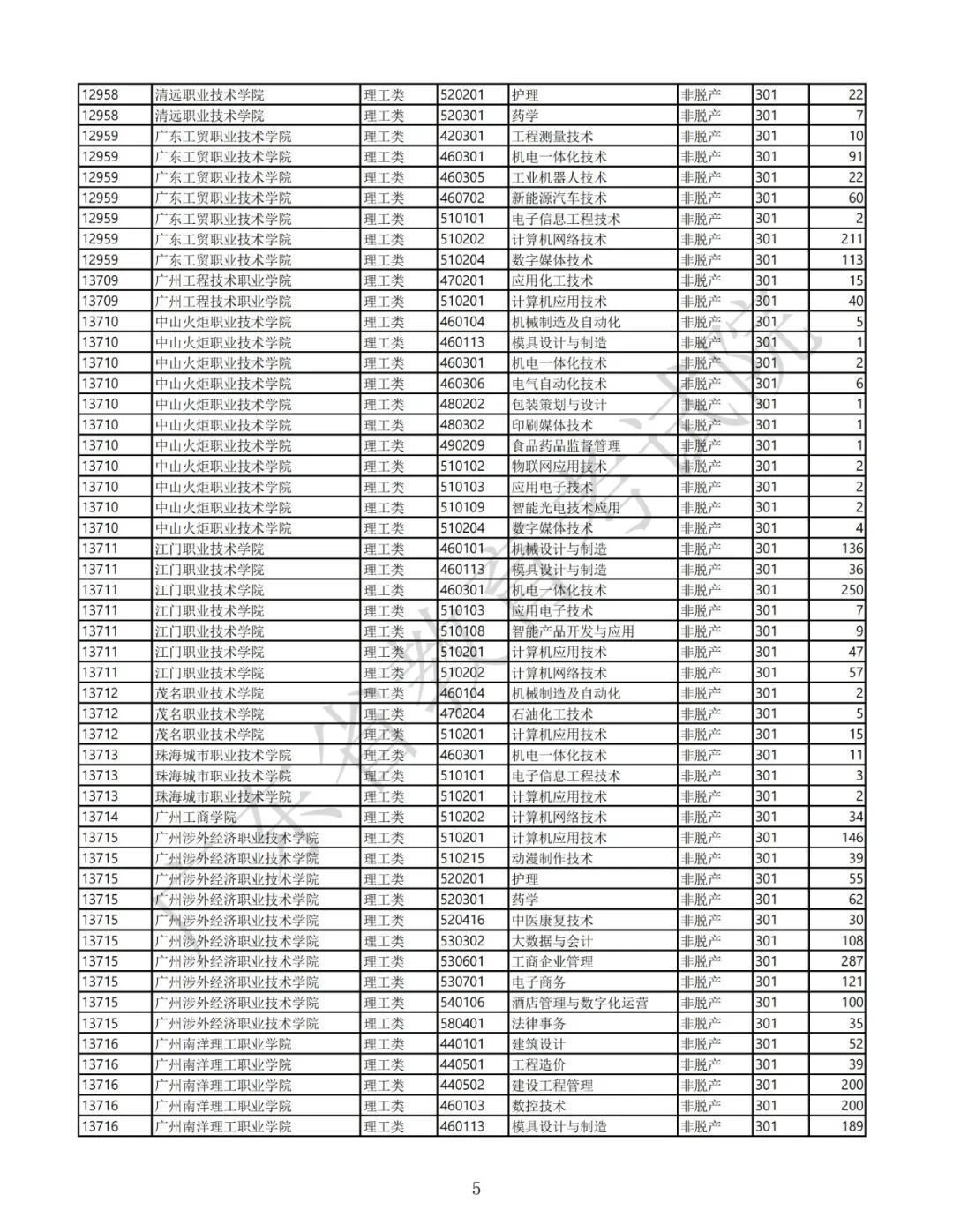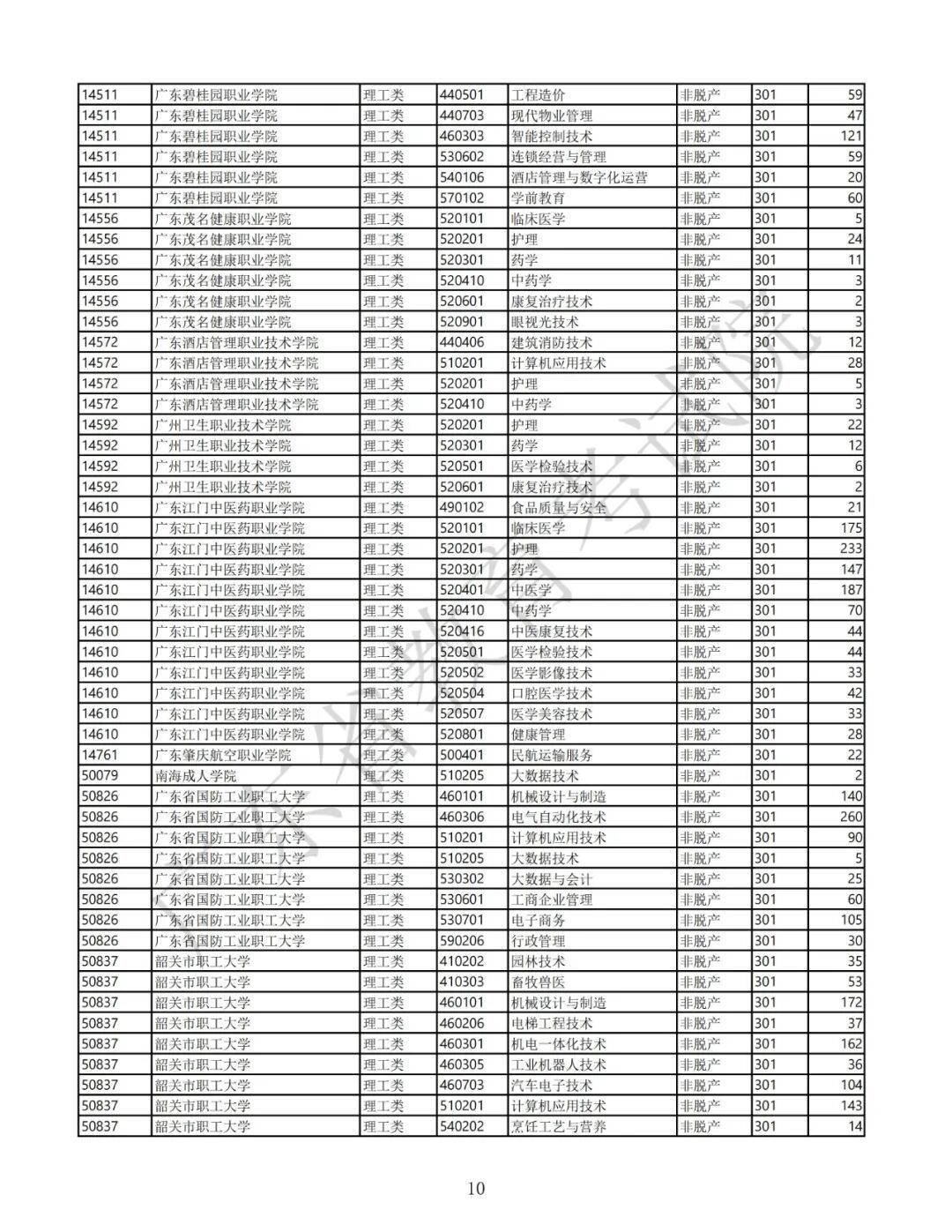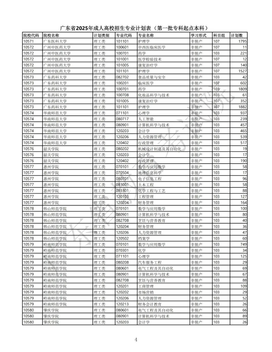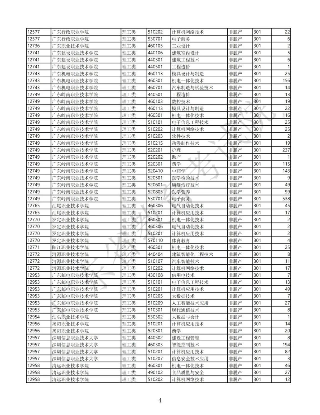 4.广东省2025年景东说念主高校招生专科筹画表(第三批高中源头专科非脱产)