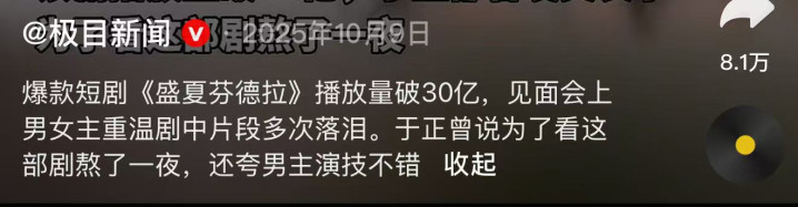 要知说念,这个成绩在短剧圈中可谓是含金量完全的存在。