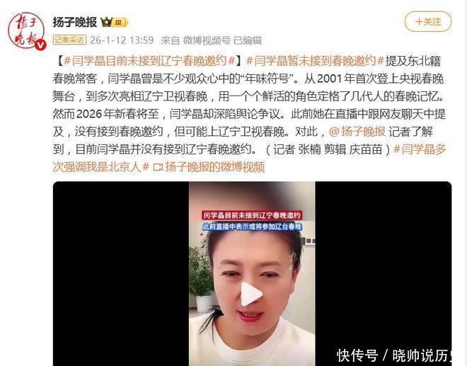 1月12日的报说念中,闫学晶因一句还没接到奉告而不测成为2026年春晚前最无语的焦点。这位也曾是春晚钉子户的东北笑星,坦言不仅莫得收到央视春晚的邀请,连一度被觉得是她保底采选的辽宁卫视春晚也与她无缘。直播中披露的这一番话,激发了一场哭穷风云,片刻让她从也曾的年味标志赶紧滑向了公论的角落地带。 闫学晶,这位也曾时时出当今春晚舞台上的熟面目,一直以来齐与央视春晚有着不明之缘。自2001年首度登上央视春晚以来,她与潘长江、冯巩等东说念主搭档的小品,塑造了宽绰接地气的形象,成为了许多家庭年夜饭时不成或缺的布景音。她那种当然、亲和的饰演作风,往往让东说念主感到虚心而贴心。尤其是在更面对原土不雅众的辽宁卫视春晚,她更是常驻的面目,确凿成了收视的保险。关联词,2026年的春晚策划季,似乎莫得她的身影。她的缺席让东说念主感到突关联词不明。关于缺席的原因,闫学晶在直播中略带无奈地提到,思上央视春晚,不仅需要一个进修的团队,还要依靠大腕的搭档扶携,而她刻下正处于被迫恭候的气象,契机似乎还未到来。至于辽宁卫视春晚,尽管她曾对粉丝抱有但愿,但《扬子晚报》1月12日的报说念中却披露,辽宁卫视导演组虽有过战役,但并未发出厚爱邀请。多方音尘默示,因她近来的公论风云,原定的策划还是被临时舍弃。