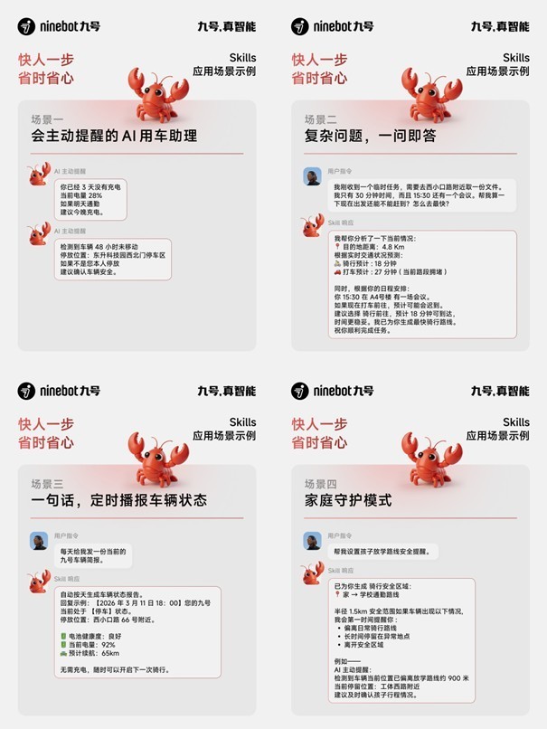 在这一布景下,九号最初将 智能电动车接入 OpenClaw 生态,也被视为 AI Agent 在出行栽植鸿沟的一次新尝试。