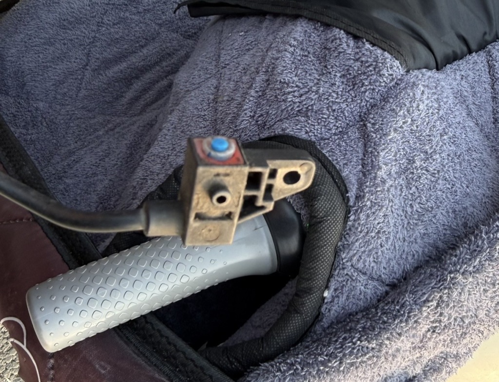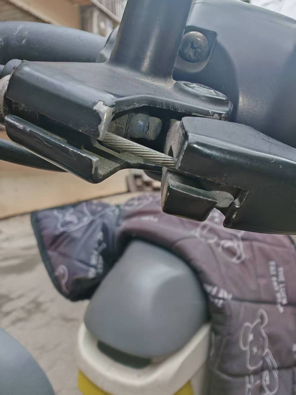 涉事电动车左闸为饱读刹,和右闸上的断电开关不同,饱读刹上的断电开关在不握闸现象下,是被包裹的。
